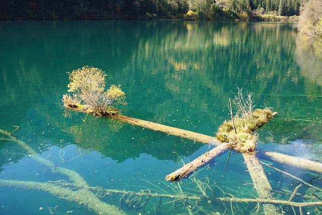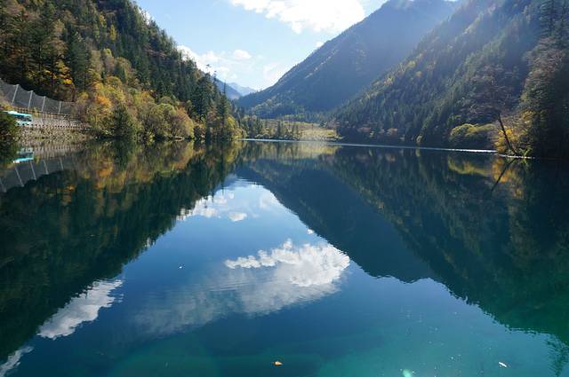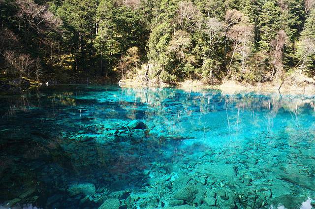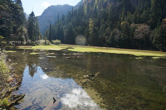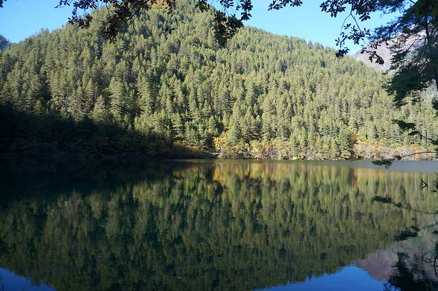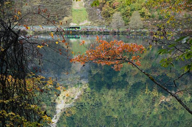 到此一游式继续搭观光车前进,便是熊猫海。比起箭竹海,熊猫海的倒影更加漂亮了~