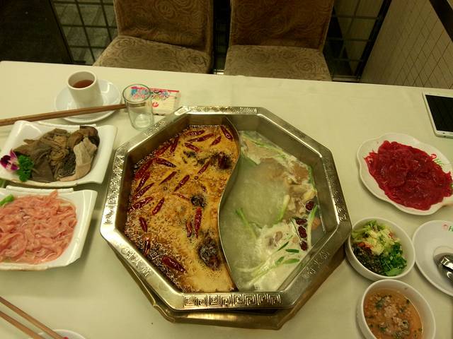 初试重庆火锅,久闻重庆辣辣辣,所以点了一个鸳鸯锅。配菜方面有鸭肠、毛肚、牛肉,都是在一个美食节目上看到的,嘻嘻~其实,我是一个很不能吃辣的人,但是到了重庆居然觉得重庆火锅也不是那么辣!哈哈……最喜欢吃的是鸭肠,涮8秒就好啦。店名奇火锅。