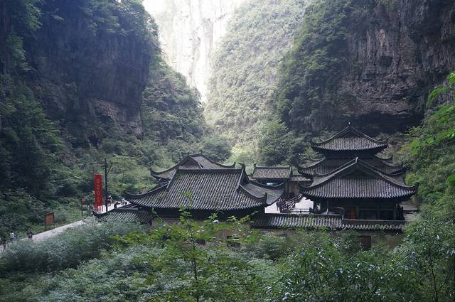出了电梯后一路往下(不走回头路)便就是拍摄满城尽带黄金甲的客栈,也就是整个天坑的核心景区了。