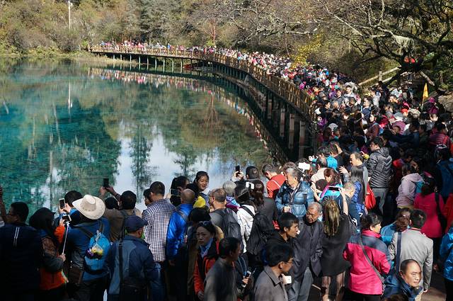 为了分流旅客,观光车直接在树正寨停下了,由不得我们选择。