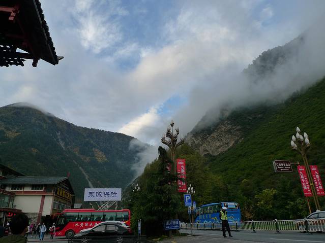 下一站我们计划去九寨沟,因为我们一路只顾着玩,然后都忘了去车站买车票了,没想到在网上搜索了一下,在携程上可以定,159元/人,果断下手了。其实新南门车站去九寨沟的车次还挺多的,但是都很热门,我们很早就去取票,取好票之后在附近吃了一碗龙抄手,就开开心心出发了。 不过路程并不像想象的那么顺利,走到半路居然下起雨来,还遇到塌方、堵车、绕道。天气越来越冷,车子走的都是一些小道,路很弯的,听到大巴车上越来越多人开始抱怨简直就是花钱找罪受,心也冷了起来。从早上8点45分开始出发,一直到晚上接近9点才到达九寨沟沟口交通枢纽中心,历时12个小时。车外下着中雨,气温只有2~3℃,伞又在箱子里,下车后拖着行李根本顾不得可能产生的高原反应一路小跑找地方避雨以及拦出租车,幸好出租车还是挺多的,20元/辆到酒店。 小Tips:住宿可以选择沟口,离景区和九寨沟口交通枢纽中心都近一点的地方,因为九寨沟搭车很贵,基本上是上车10块/人,不打表。