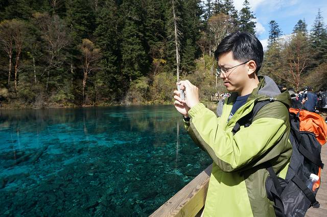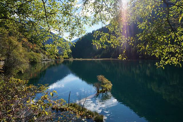 太阳渐渐下山,湖面已经看不到阳光了。我们找了一个椅子,迎着微风,欣赏着美景,看着前方的故事,静静地享受当日在日则沟的最后一刻。日出日落,又有新人奔向他们的幸福人生。如果可以选择,下次来九寨沟我一定选先逛日则沟,尽管当时已经有点审美疲劳了。