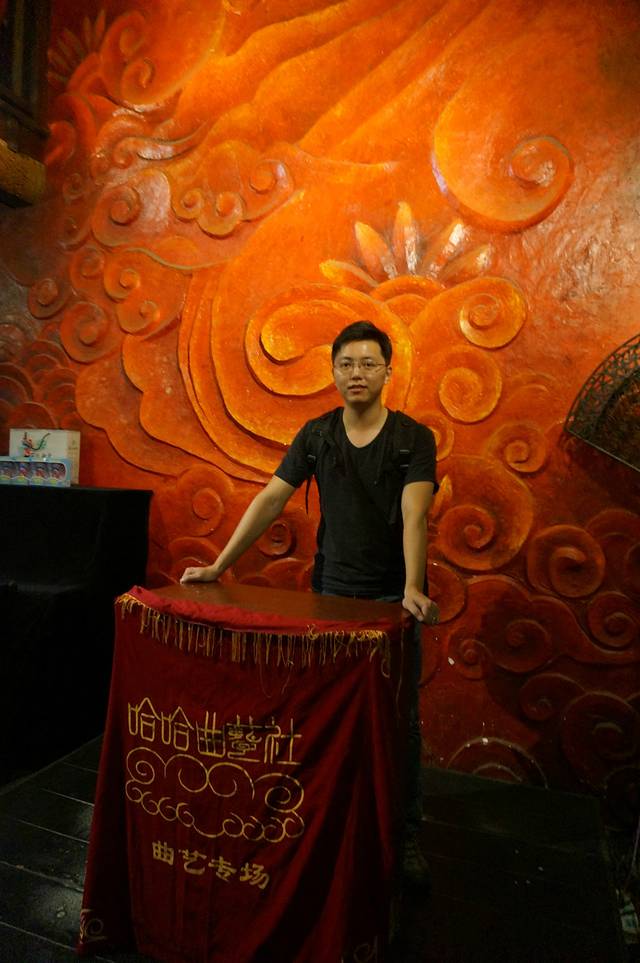 我们点了两杯茶,在柳树旁边的“铜雀台”,听着说书先生讲《聊斋志异》,还看了奇妙的变脸。