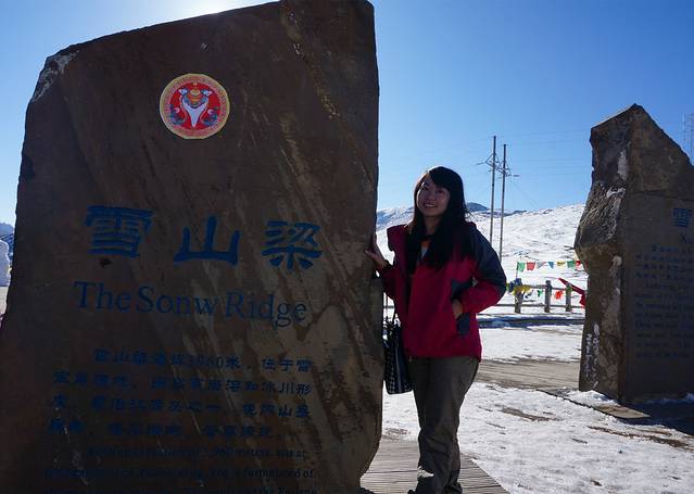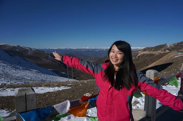 请大家忽略我那乱糟糟的头发,因为我在车上一直在睡觉。忽然师傅叫下车看雪山立马冲下来的啦~