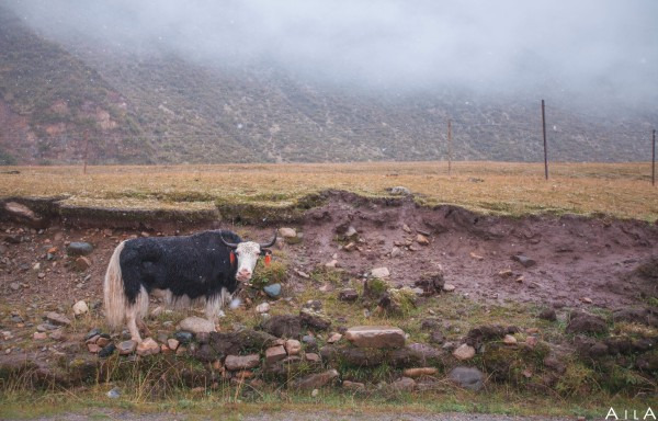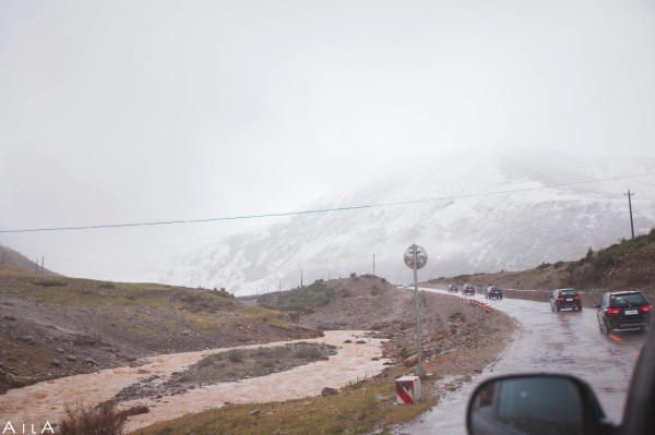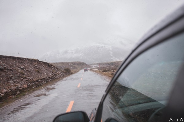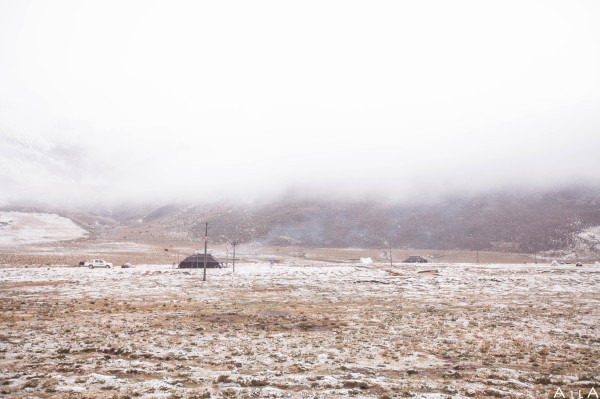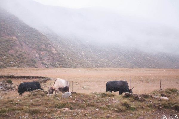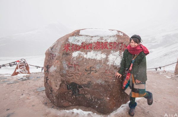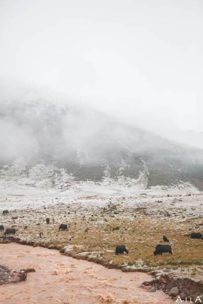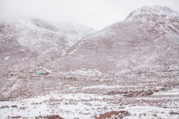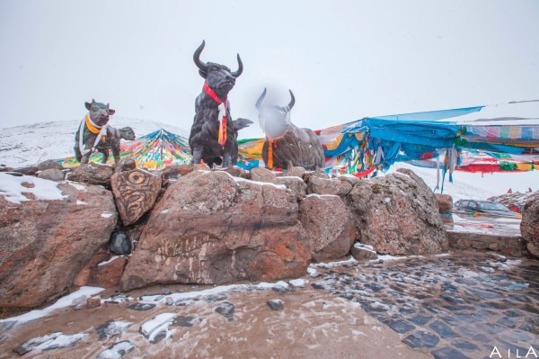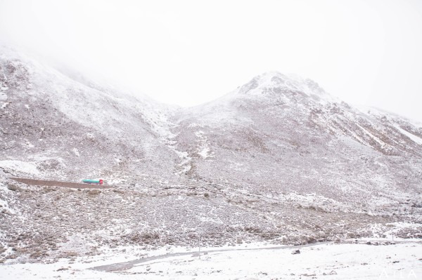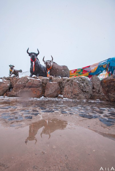 一路中雨,车速不能太快。翻过米拉山口就算离开林芝地区了。海拔到达4210的时候,天空中的雨渐渐变成了雪,这是爱拉2015年的第一场雪。