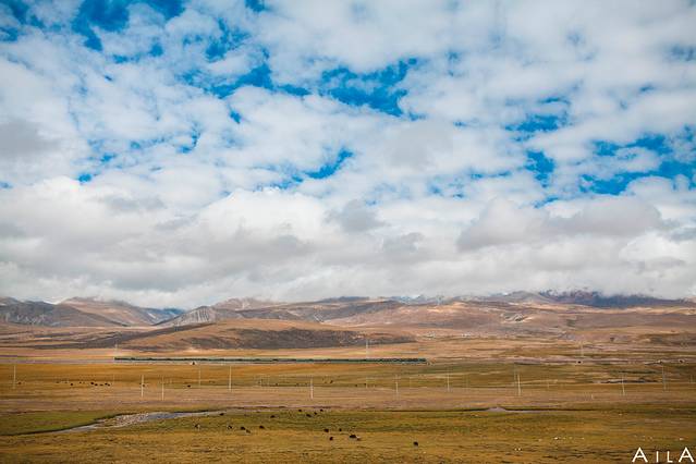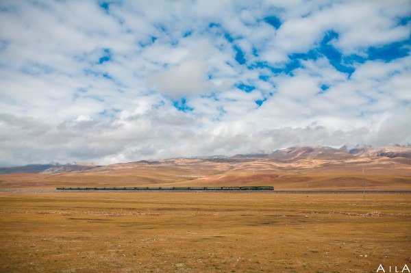 在拉萨去纳木错的路上,与青藏列车并肩而行