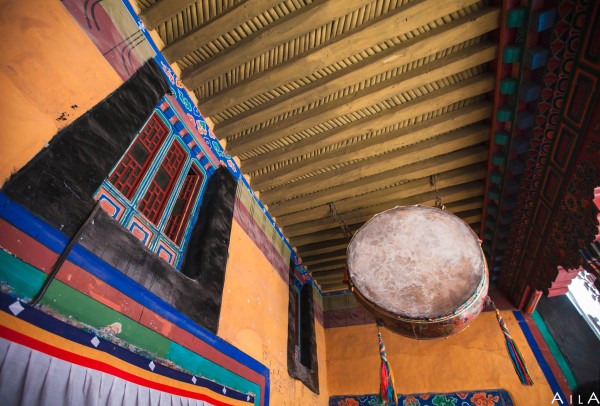 这面大鼓在以前是要在拉萨时间21:00,北京时间23:00准时敲响的,就相当于布达拉宫的熄灯号。