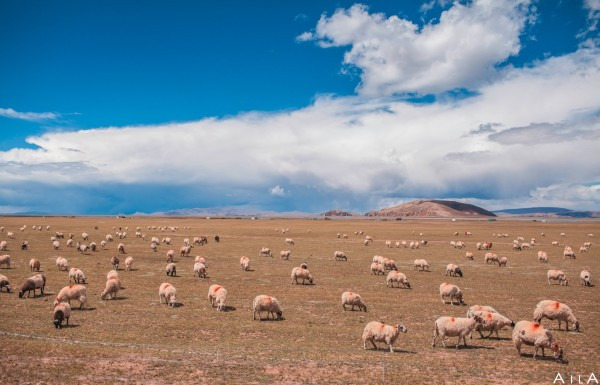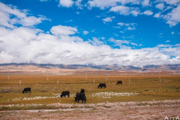 道路两边牛羊成群,要审美疲劳了,去纳木错的路上重卡比较多,做一一般的检查站限速都是一分钟一公里,所以不用开很快,慢慢享受旅途就好啦