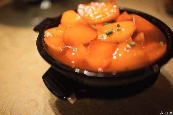 这个菜是爱拉最喜欢的,是藏香猪的炖猪肉。赶脚像是个上海厨子的手艺,味道甜甜的。很好吃~这里的饭菜大都中规中矩,不过价格不菲。景区嘛,都这样。一墙之隔的份饭还50大元呢。