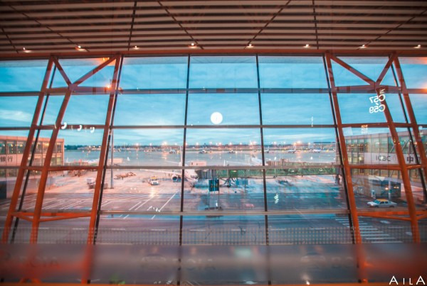 顺序通过安检,透过机场的大玻璃窗发现原来今天早上的天空这么美。