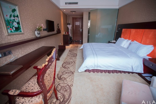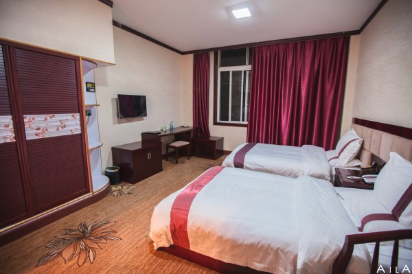 从早上四点起床,一直折腾到晚上18:00,已经一圈多了。终于见到舒服的大床了,房间很宽敞干净。爱拉房间的窗户正对着迎宾大道,虽然是主干道,但因为八一镇的人很少,晚上开着窗子睡觉,一点声音都没有。
