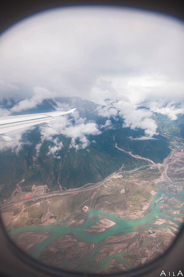 早上起得太早,进入云层后很快就睡着了。迷迷糊糊的飞了大约将近4个小时。再醒来时飞机外面已经是满眼的雪山了,异常兴奋。时隔一年的西藏,再一次近在眼前了。
