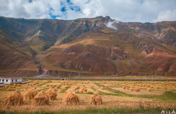 109国道同样风景秀丽,正好赶上青稞收割的季节了,公路两边经常看到这样的青稞垛,很可爱~