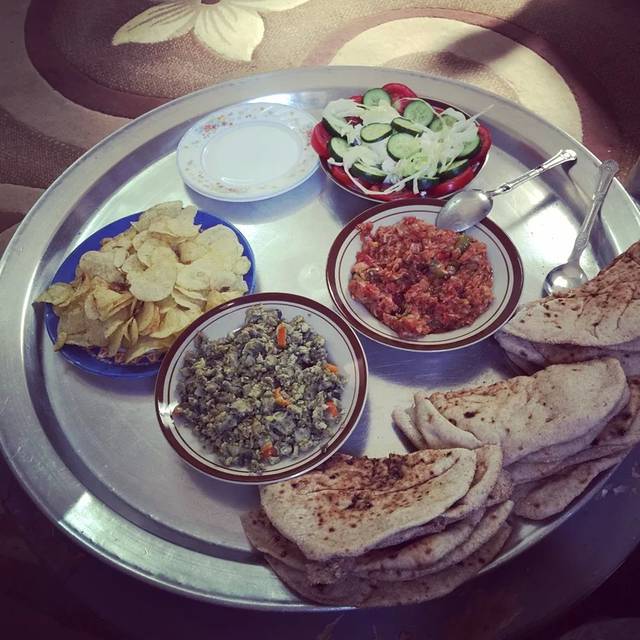 一路上就各种睡,再一睁眼的时候到了这个休息站。这个休息站离巴哈利亚大概有两个小时的车程,茫茫沙漠里就这么一个站点,还算不小,有小餐厅、小卖店、洗手间,还有休息椅子。到了巴哈利亚ALAA已经在车站等我们,中途他给我打过几个电话确认车次时间什么的,真的是个特别细心的小伙子,事无巨细什么都替我考虑到,早早的等着我们没想到我们在开罗堵车又耽误了这么久。我一下车他就冲我说 im alaa!哈哈也不知道咋就知道是我的,他问我你就是tata的朋友吧,咱们通电话的那个,我说对,他说那就对了~巴哈利亚这儿有ATM机,可以取现金,alaa把我们接到他家饱餐了一顿午饭,我跟老顾起个大早一直到两点多钟这才吃了第一顿了