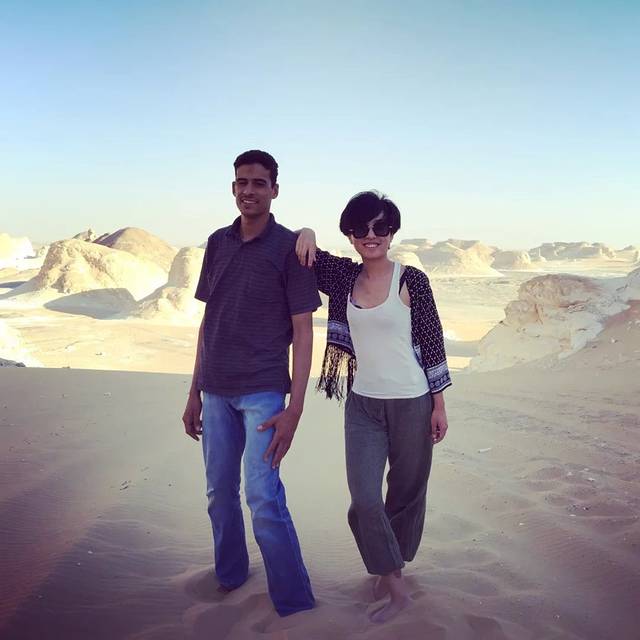 跟老顾是在内蒙沙漠的工地认识的,那时候他是我的老师,我跟着他天天下现场测标高、学放线、看钢筋铺设。那时候我俩谈恋爱总爱溜达大沙地,四年的时间,我俩从内蒙的大沙地溜达到了北非的大沙地,也从四年前的师生,溜达成了两口子。