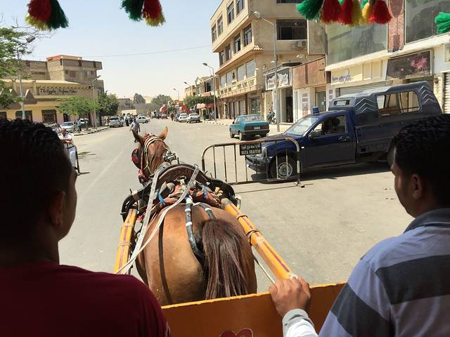 出了酒店找了个面善的司机打车去金字塔,他说领我们去他朋友的马车行,大概问了一下价格,觉得还可以接受,再加上中午太阳实在是够厉害,我俩就跟他走了。