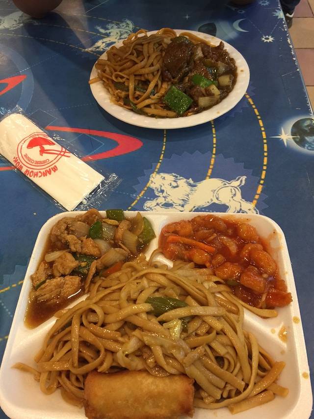 确实挺大,恩,开罗大悦城吧~在美食广场那一层还找到了一家中餐快餐。糖醋里脊(应该是鸡肉)、回锅肉(牛肉)、还有炒面、春卷、一份特别咸的西湖牛肉羹。
