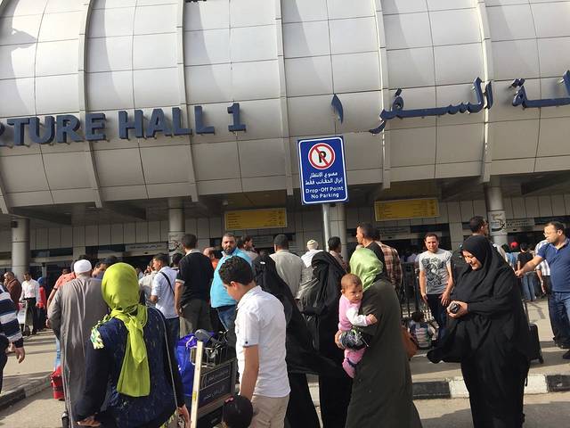 开罗国际机场,够混乱~跟国内的汽车站似的。从门口就开始按照航空公司分开排队进入。