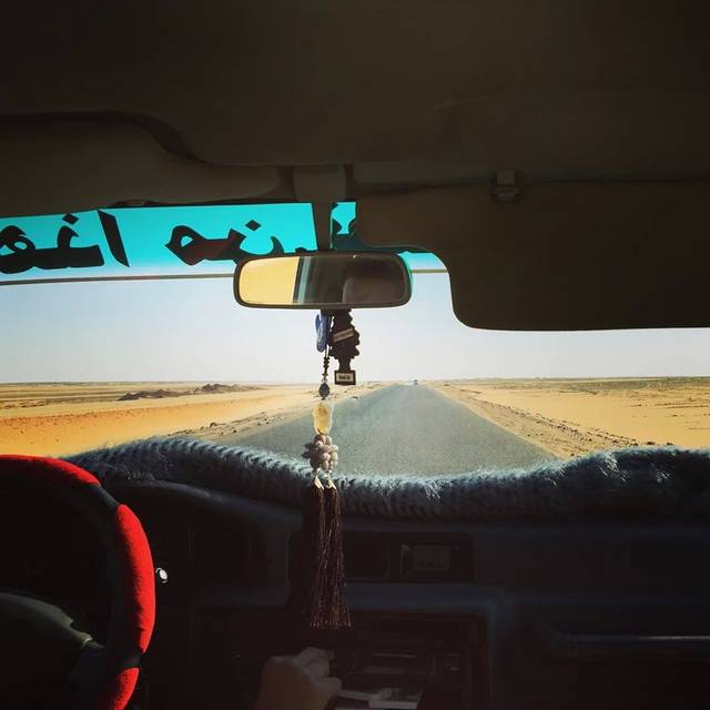 偶尔经过修路的站点,alaa总会从车里拿出一大瓶矿泉水留给他们,也许他们也并不认识,只是这茫茫大漠,找到一个村落都要好几个小时,补给也许也没有那么及时,这一路我们遇到好几个修路或者其他基建的点儿,零星的几个工人,alaa每次都要给他们送水。我和老顾就在懊恼,为什么刚才在小村里买烟的时候不多买点水分给他们。对了我们出镇子的时候路边还有个老爷爷招手,alaa跟他说了几句后转头问我们,说能不能载这个老爷爷一段路,不会很久,很短一段,就到前面的村子,因为天实在是太热了,他走过去一路会很热。我说当然可以啊这个完全没问题呀。他把老爷爷送到目的地,老爷爷给他给我们道谢,我觉得这种最单纯的关系真好,这种感觉真好。