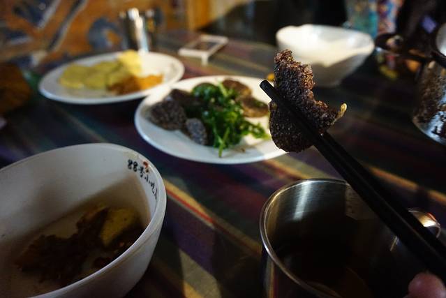古城里的88号小吃也是要排队拿号的,都是本地小吃,味道不错价格也适中,烤鱼要推荐下,没有沾到汤汁的那半面是脆脆的,口感不同于我们在城市里吃到的