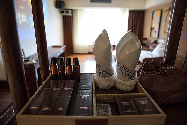 提着行李的我,本是风尘仆仆,可是一进门,舒缓的音乐,一脸亲切的前台工作人员顿时让我感觉特别舒心,不再浮躁。我递过身份证,正在东张西望,一杯欢迎咖啡便递到了我手边。CHECK IN的时间都变成了享受。