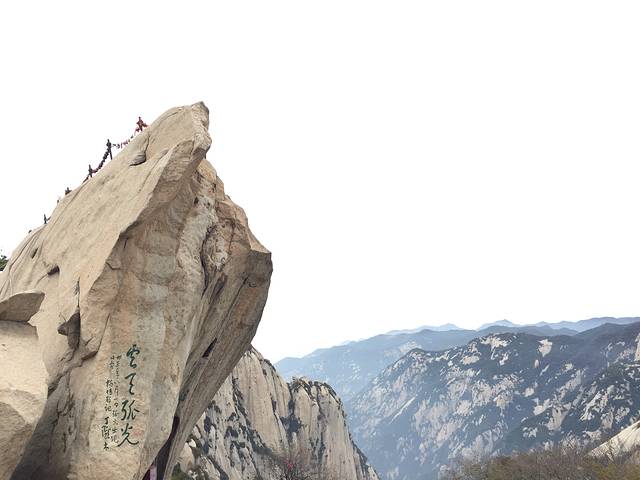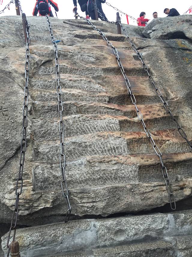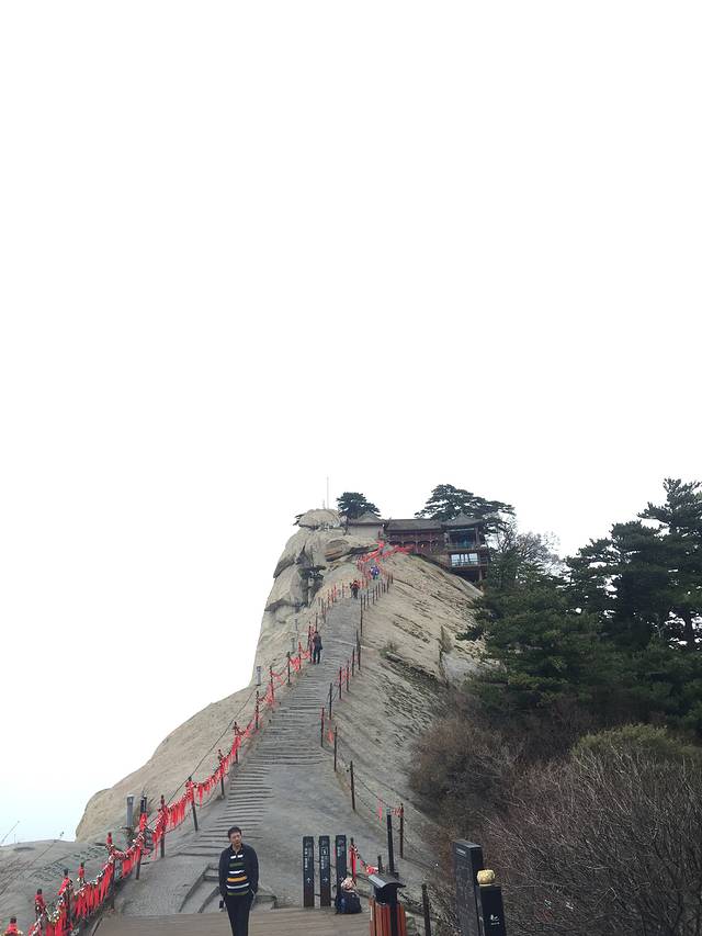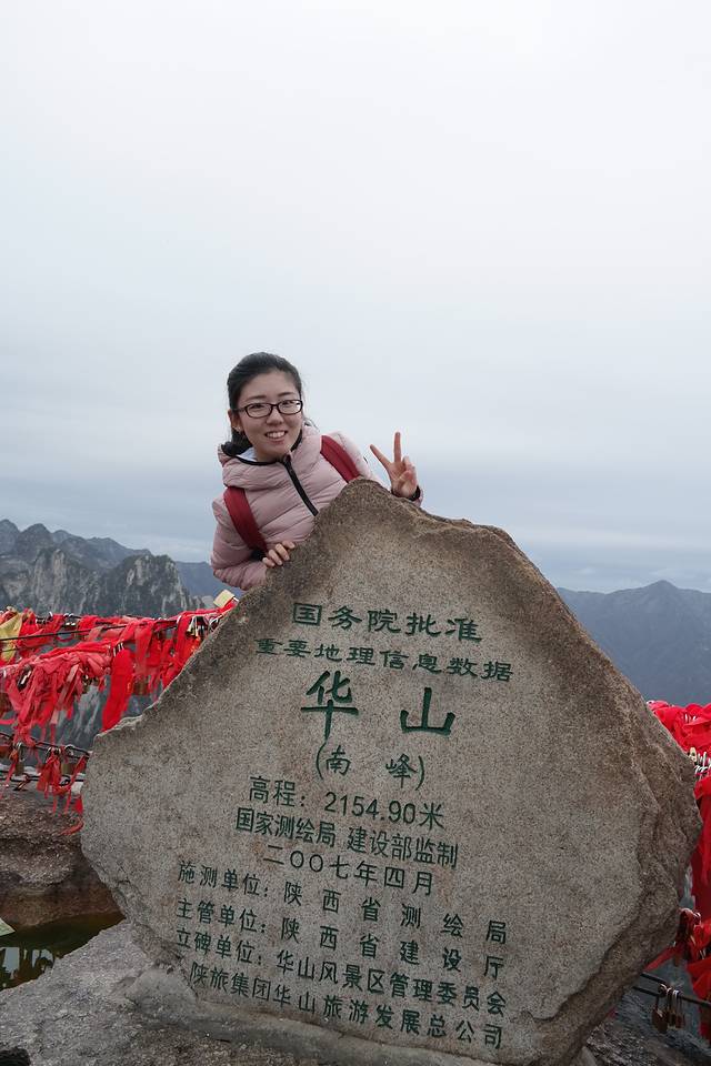 自古华山一条路,和大萌萌用时三个半小时先后登顶北峰、南峰和西峰。将华山壮美绝伦的景色尽收眼底,爬的时候华山下起了淅沥的小雨,虽然加大了爬山的难度,但雨中的华山云雾缭绕更是美不胜收。爬华山的路线很多,有北上北下、西上北下等,但我和大萌萌选择的路线是北上西下。北峰是东南西北中峰中海拔最低的,南峰最高,西峰其次。但索道的话只有在北峰和西峰才可以乘坐。大家都知道上山容易下山难,华山奇险,上山虽累但体力好的完全可以胜任,倒是下山因石阶密而窄所以走起来很是不易,而且膝盖会承受很大的负担,所以建议大家北上西下。还有很多登山者选择夜爬,在东峰过夜看次日日出,如果下次再爬华山的话,好想尝试下~提醒大家的是,爬山的时候一定要注意安全,走路不看景,看景不走路,安全第一,切记。华山门票180,北峰索道单程80,往返150。西峰索道单程140,往返280。索道一节车厢最多乘六人,初次乘坐需做好心理准备,垂直高度很高而且四周都是悬崖峭壁,忽地悬空恐高患者刚开始会觉得很不适,但等把华山爬下来你的恐高病基本上也就治愈了~乘索道需乘坐景区内的大巴车,前往北峰索道大巴车单程20元,车程约20分钟,西峰索道大巴车单程40元,车程约40分钟。建议上山做好保暖措施,十月份山体上就覆着雪了,想轻装上阵的公举可以带上暖宝宝,翻过北峰之后会用得到。吃的东西多少带些,热量高的轻便好带的,士力架红牛什么的可供参考。山上因安全起见是不允许撑伞的,所以夏季做好防暑,雨季带好雨衣。市内乘大巴至华山约2小时。