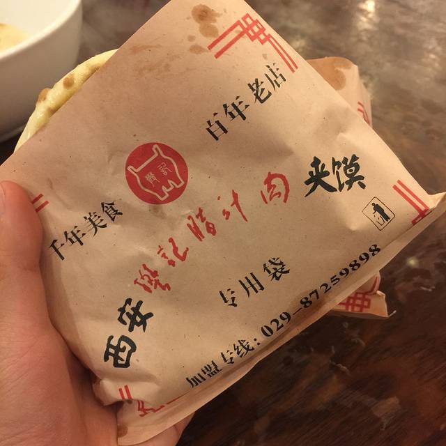 回民街最好吃的酸菜炒米,兴许是在外上了一天的坟到市内都八点多了的缘故,吃一碗酸酸辣辣的炒米很是下饭,之前说的认为最好喝的酸梅汤就是他家的,很清甜的乌梅香,酸甜适中,口中生津,让人停不下来。回去的路上还有一个夹馍店,排队的人超级多,还上过什么美国discovery节目,就买了一个吃,他家的夹馍里面是抹辣子的,但吃不出辣味,肉给的很多,还浇上汤汁,馍倒是一般般。好像叫嘹咋咧。