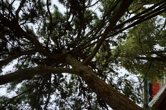 闲话少叙,言归正传。来戒台寺游览,除却礼佛,自然是来看奇特松柏的。这竖直向上,无其他旁逸斜出的活动松像极了一把大伞。