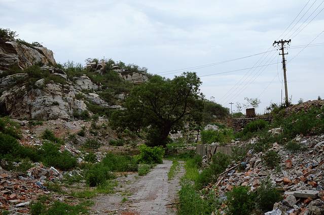大灰厂西站下车后,一路寻访,终于寻得石佛村的踪迹,却是一片荒凉。周围采石场工作的老乡告诉小驴,石佛村已经拆迁了。若是要去看石佛,沿着古道走便可以,古道的入口处有一棵显眼的大树。循着老乡指引的方向,小驴与同伴几经辗转,才在群山乱石与废墟颓圮间发现了这棵古树。