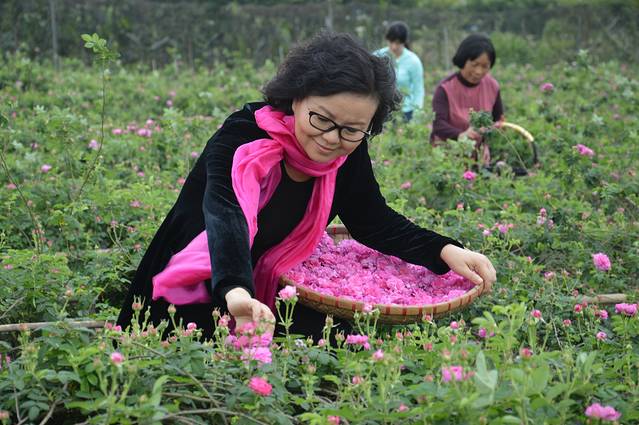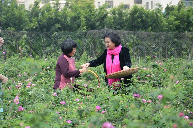 中山市领导采摘荼薇花.