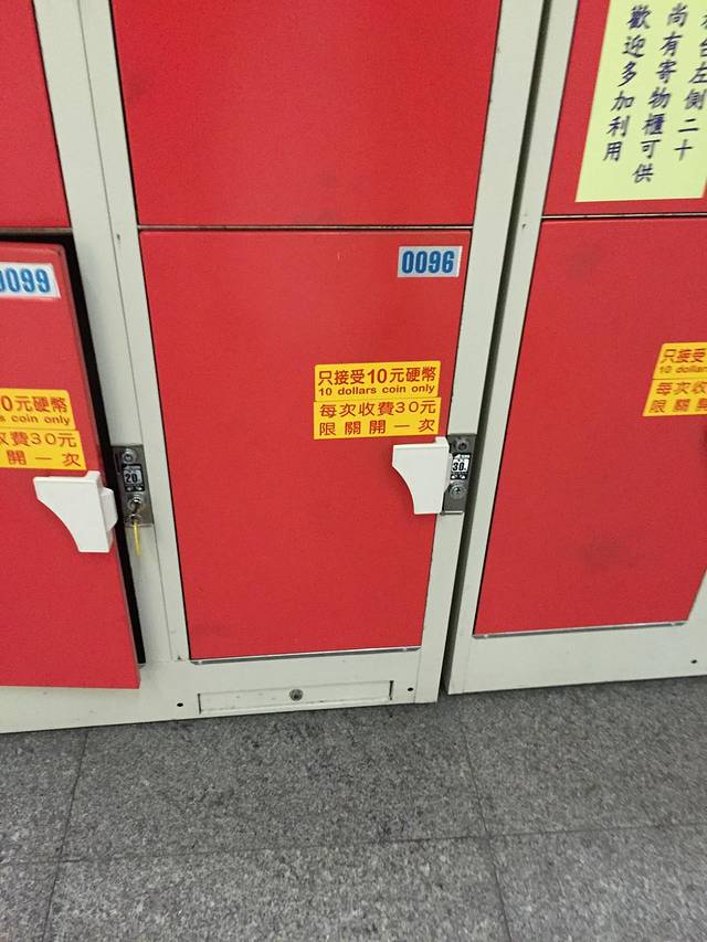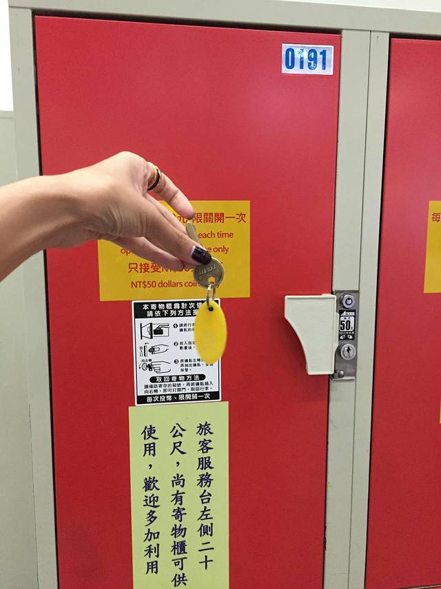 寄存柜分好几种尺寸,大一些的可以放下32寸行李箱,NT$50
