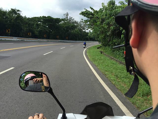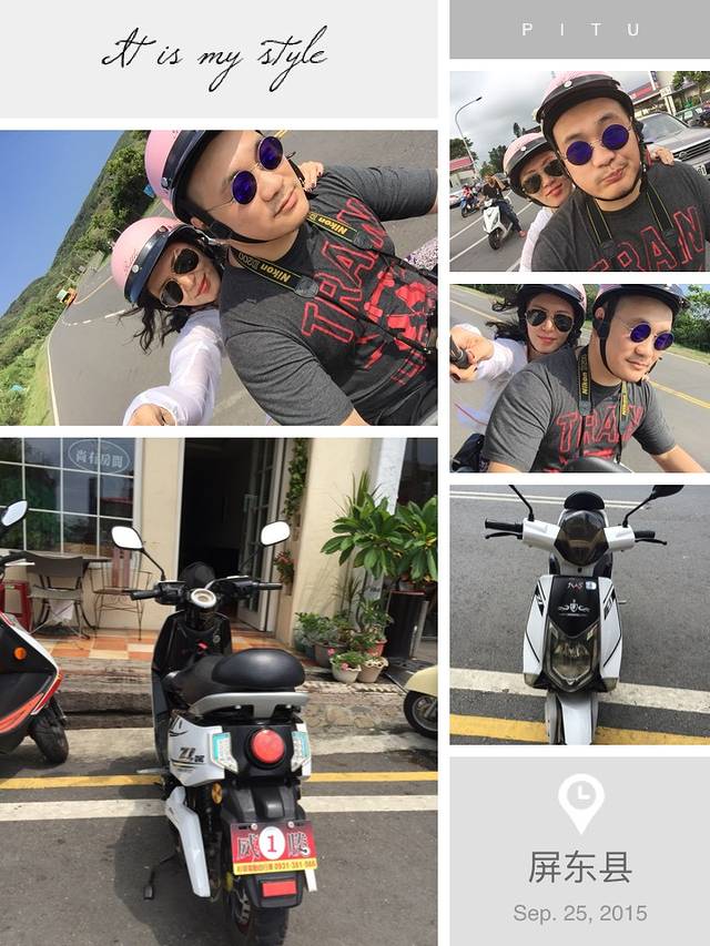 继续睡到自然醒,机车已经送到酒店,哈哈,两个小粉帽亮了!先是一路向南,发现逛不过来了,路过白沙湾海滩呆了下,又去了个“最南点”,完事果断改道一路向北,直奔恒春县城。
