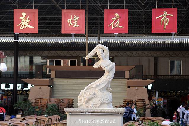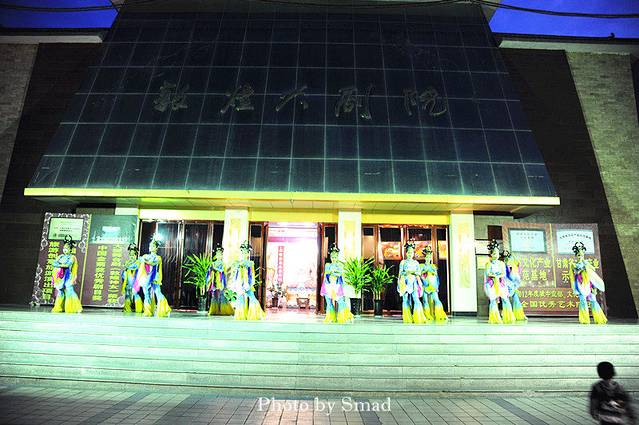 敦煌神女演出是目前敦煌现有的二场大型演出之一,另外还有一场莫高窟的演出据说在策划筹办中。而演出在市区的大剧院。
