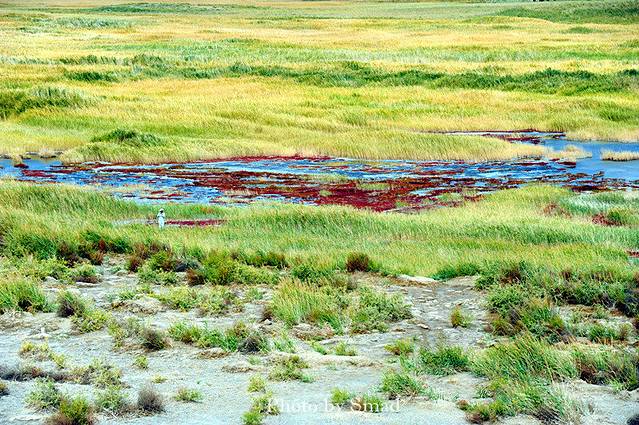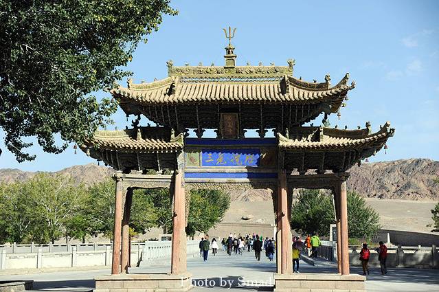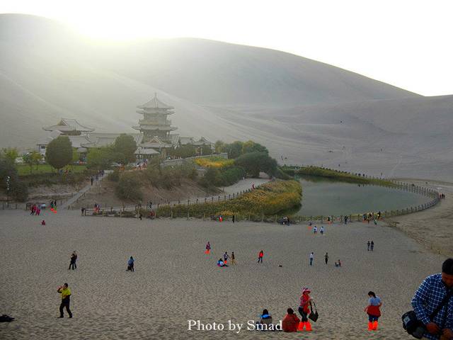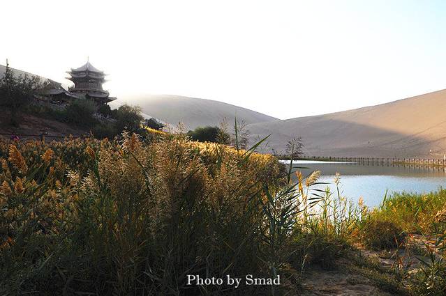 在它的背面就是一片沼泽湖泊,远看非常漂亮,根本没想到自己身处西北戈壁之中。