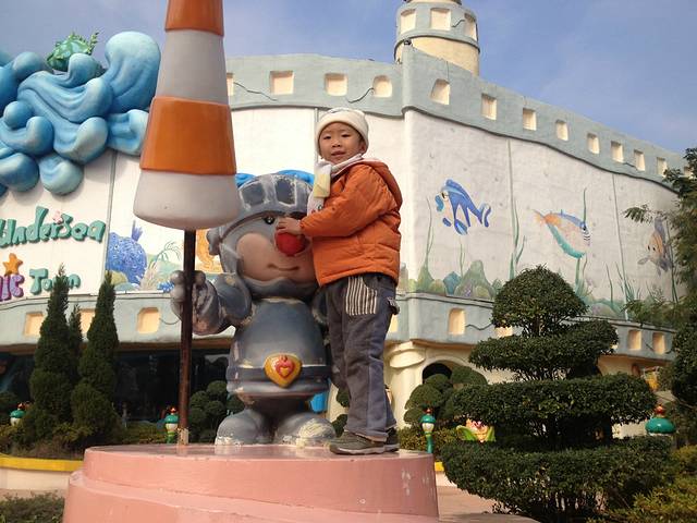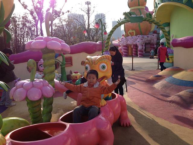 很多游戏小宝宝都不能玩,而且排队人也很多。在当地人指点下,我们去了河对面的粉色宫殿,那里是小宝宝专区
