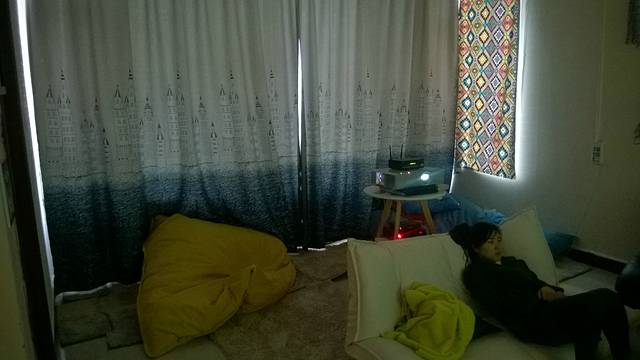 12号长沙的飞机飞往昆明,在昆明坐K9632,晚上22:14始发站,13号早上道德大理。下了火车之后在火车站的门口坐8路车(8路车有很多,几分钟一趟)到风花雪月酒店下,然后沿着古城的直路走,步行100多米就到了我们的住宿地点,小石子青年旅社。老板是个年轻的帅小伙,他们家的旅社很有特点,可以用放映机放电影看。因为我们到的比较早,为了不吵醒其他正在睡觉的驴友们,我和朋友就坐在2楼的大厅里躺着看电影。