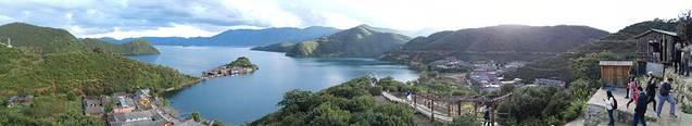 从观景台上看泸沽湖,它就像是一颗向着天空的心。