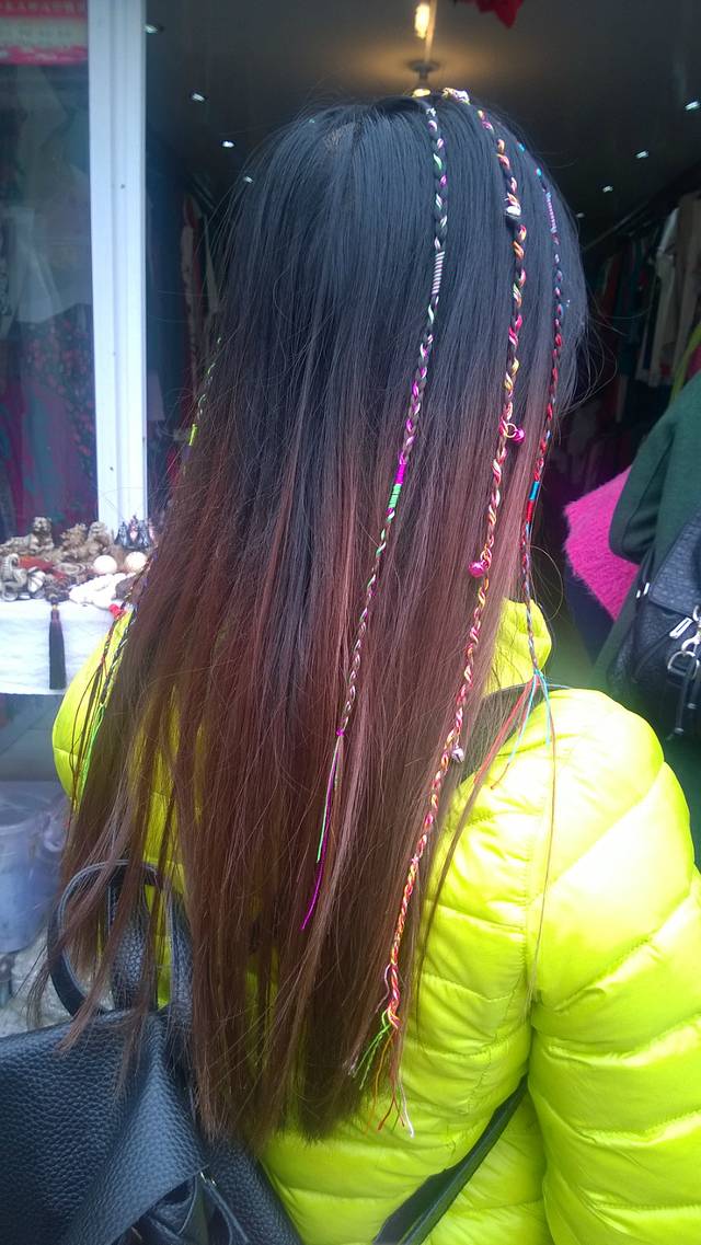 来到丽江,满街都是编辫子的,价格好多都不一样,我们这家是10元5根辫子,还选了个铃铛,走在路上好多人都问我们在哪编的,他们的都没铃铛。可惜,忘记拍店名了。