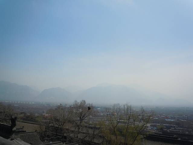 绵山在雾蒙蒙中依然可见