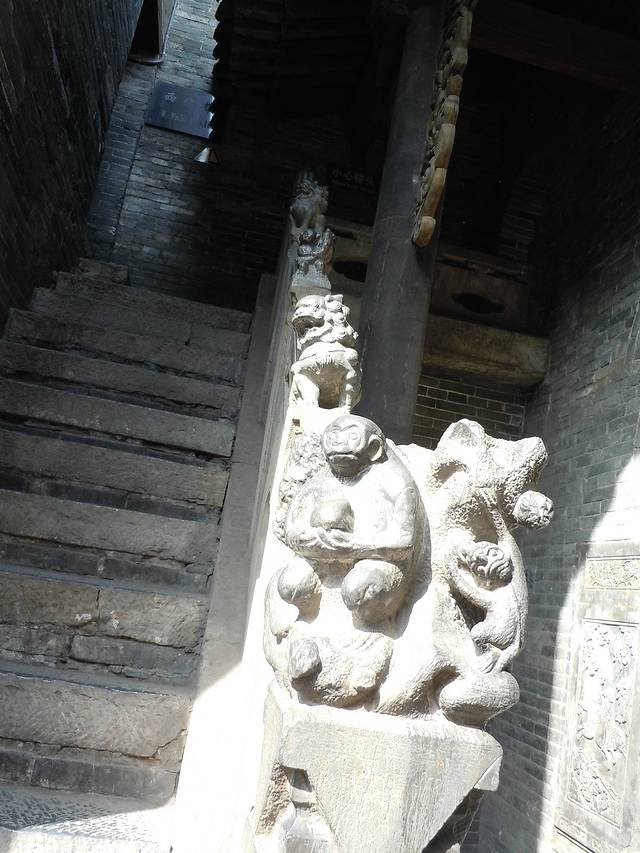 这处石头扶手上有着不同的石雕,没处都有其自己的寓意,最前面的是辈辈封猴