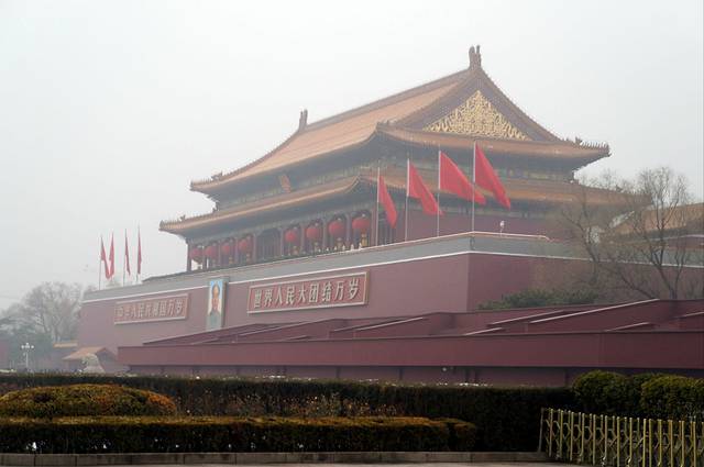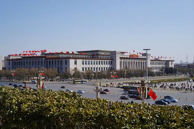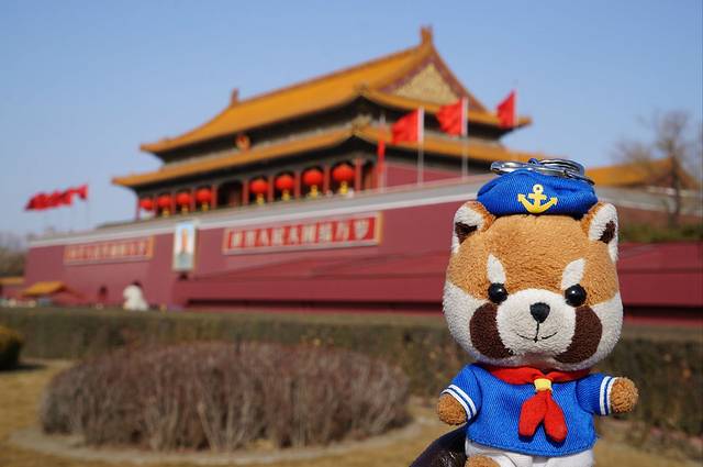 虽然是干冷干冷的大风天气,阳光晒在身上却依然暖洋洋。偶尔发现天安门城楼上有游客,问了安保大叔,现在是可以登上城楼的,于是决定过一会要上去。时间差不多了去和阳阳一一会和,狼吞虎咽了几口已经凉透的煎饼,国博我们来咯~