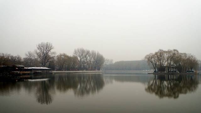 雾蒙蒙,萧瑟的“海”景,而且都没有结冰了呢