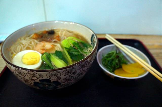 点了一碗面,把药泡起来喝,嘛~刚刚吃进去的肉,现在是还债的时候了