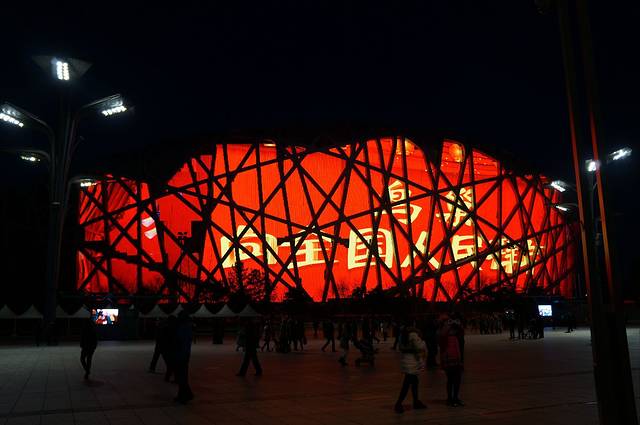这一片看完转身准备打道回府啦,惊奇的发现,鸟巢亮灯了!