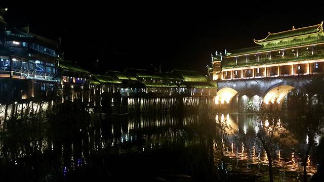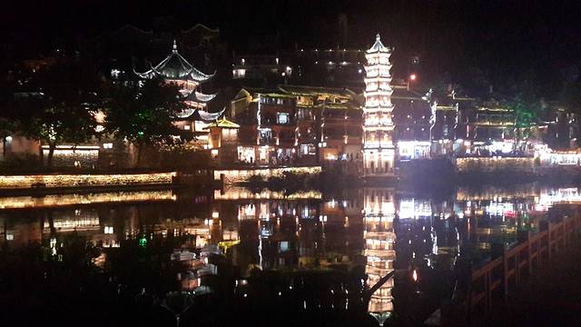 早上迟些起来,吃个饭,下午的车子去凤凰古城。要4个小时吧,到那五六点,住凤凰边城国际青年旅馆。条件挺烂的。晚上出来看看夜景,还凑活。