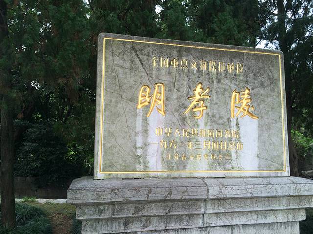 明孝陵位于紫金山独龙阜玩珠峰,为明代开国皇帝明太祖朱元璋及其皇后马氏的合葬墓。 明孝陵修建于1381年,1382年葬入皇后马氏,1398年朱元璋病逝后入葬于此,工程直到1413年才完工。取名孝陵,一说是因为朱元璋主张“以孝治天下”,另一说是因为马皇后死后谥号“孝慈”。故此陵明代称“孝陵”,到清代始称“明孝陵”,以示朝代的区别。当然北京还有明十三陵。