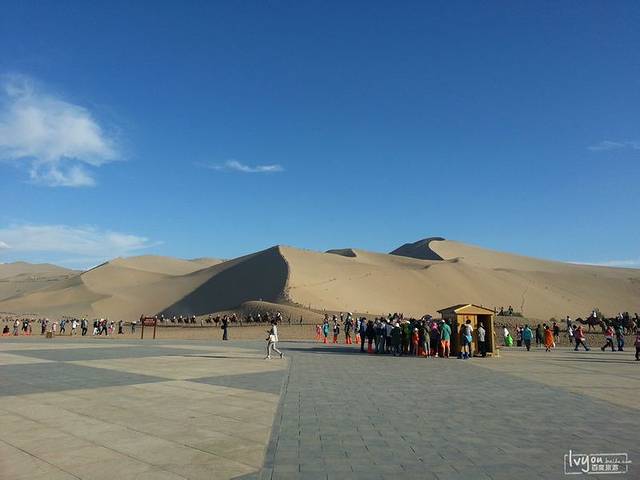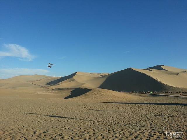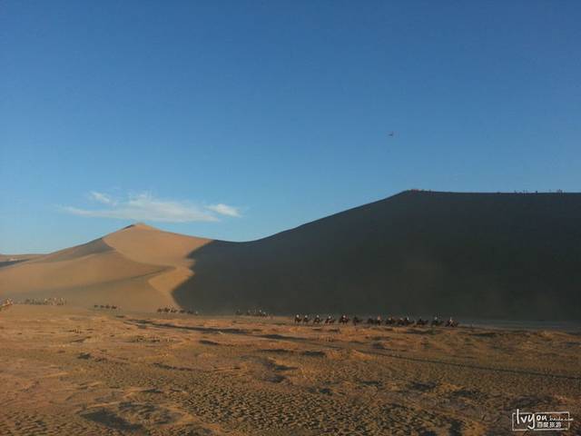 莫高窟出来是下午16:00左右,太阳正毒,于是回头到酒店补一觉,下午再出来上鸣沙山。到了鸣沙山大约是18:30,正好日落,天气非常棒。