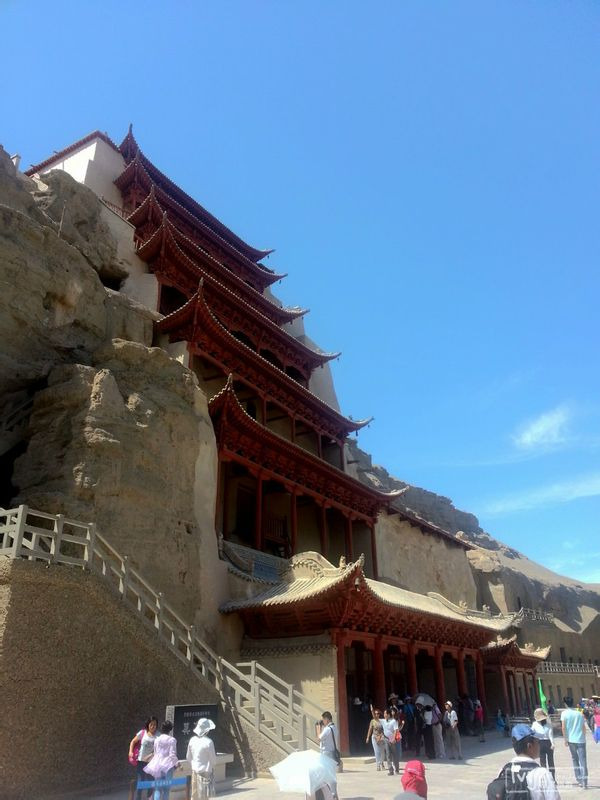 早晨起来才发现单反没电这个事实,幸亏两部手机全部充满,看来今天就指着手机混了。莫高窟内禁止游人拍照,所以里面的景象就略过展示了。莫高窟究竟能给人多大的震撼,因人而异。虽然历史上曾经遭受过无数次掠夺和破坏,但1500多年来积累下来的文化结晶以及宗教信仰,却深深烙印在莫高窟中的每一块石壁上,这一点毋庸置疑。