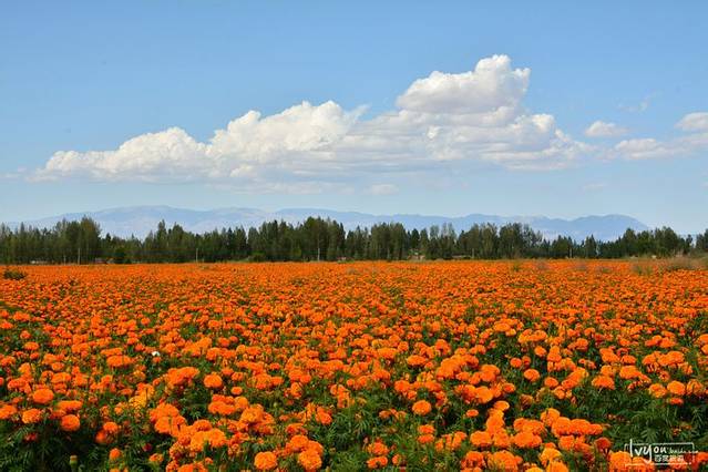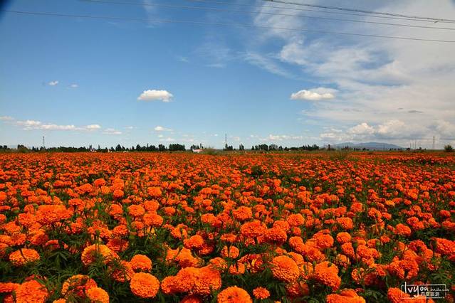 半路上偶遇万寿菊花海
