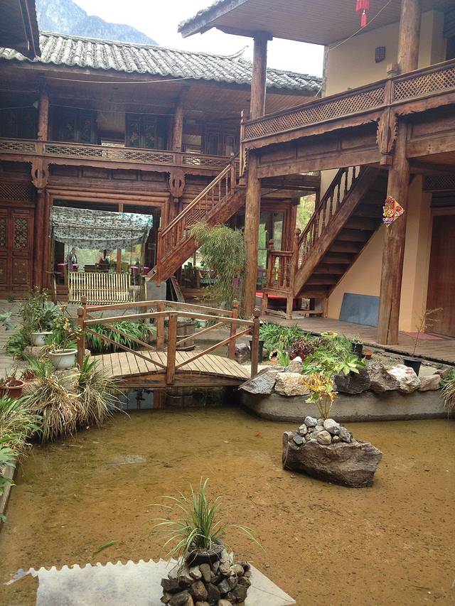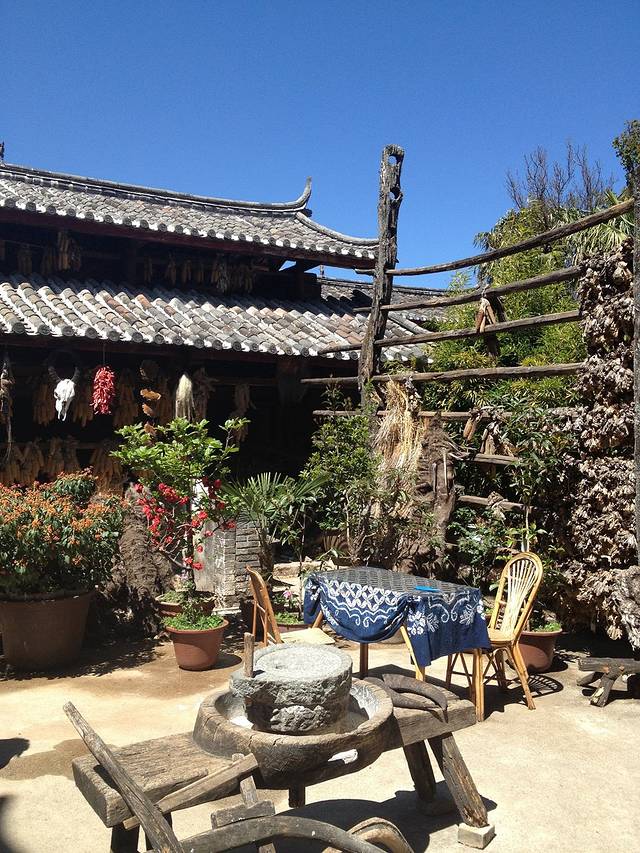 闲逛中就遇见了此行最有特色的餐厅,十里桥农家,门口看着就很有特色,鸟语花香,老板很热情地招呼我们进去参观,老板姓和,小院是自家的,很有特色古色古香的,本来是进去歇脚的,一看环境不错就准备午饭在此解决了。强烈推荐海棠茶,酸酸甜甜,甚是解渴,附近的村民也问他们家收购海棠果,但泡出来都不是这味,他们家有独门秘方。还有粑粑,那个香啊,现在想起来还口水直流。和大研吃到的完全不同,老板说了,不是粑粑不好吃,而是做法不对,他们家的粑粑非常筋道,纯手工制作。去白沙一定要尝尝,不夸张的说,这样的美味在丽江是独一无二的。